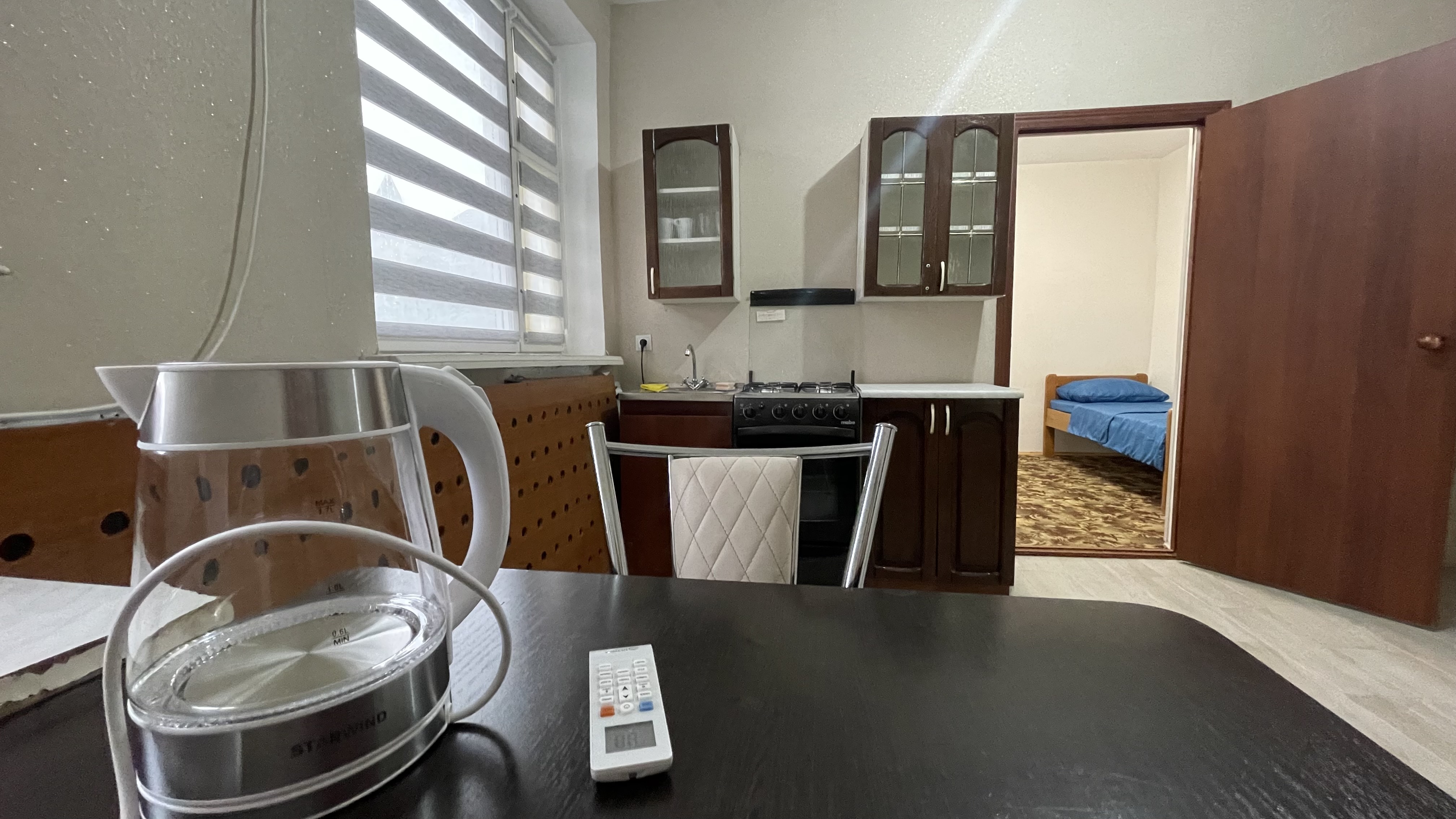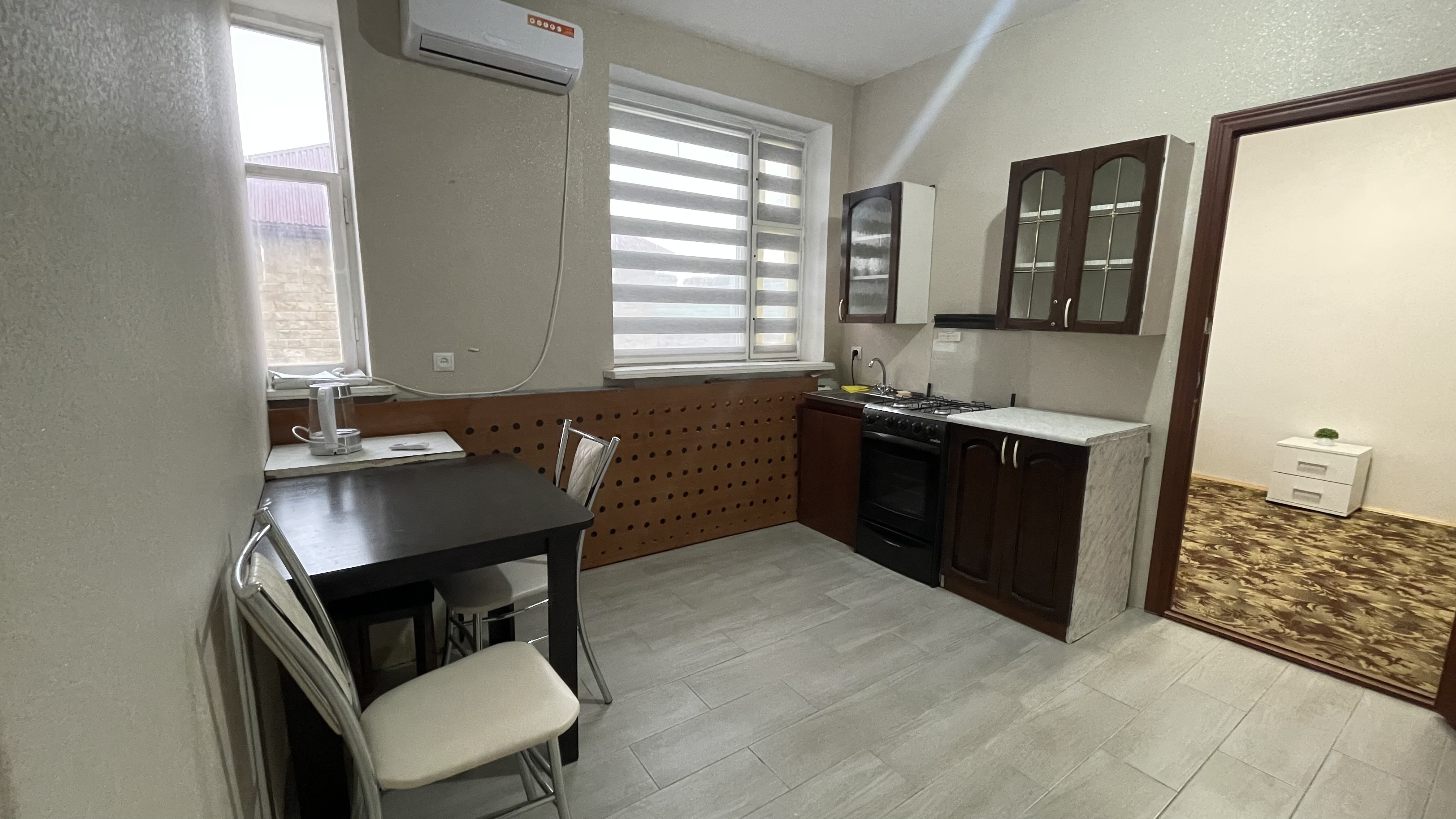 - Оборудование: набор посуды, плита электрическая, телевизор, холодильник, чайный набор посуды, электрочайник